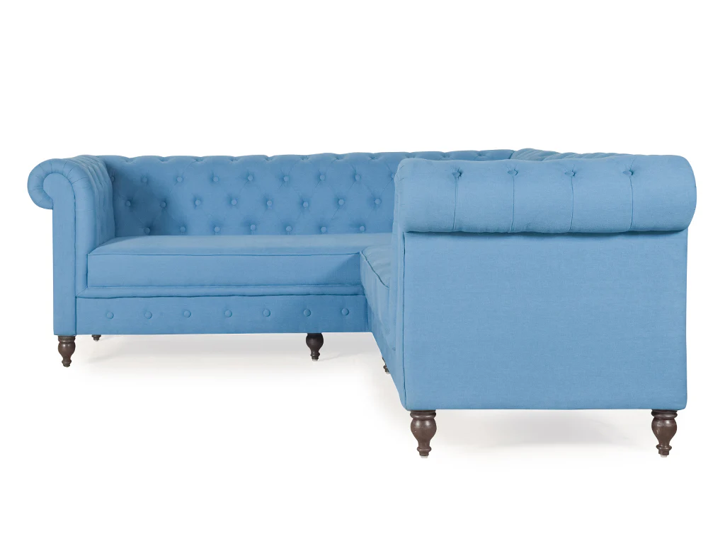 Get ready to lounge in style with the Berlin Sectional Sofa! This stunning piece in beautiful blue cotton fabric not only adds a pop of color to any room, but also provides comfort and durability. With the ability to easily customize and rearrange, it’s the perfect addition to any modern home.