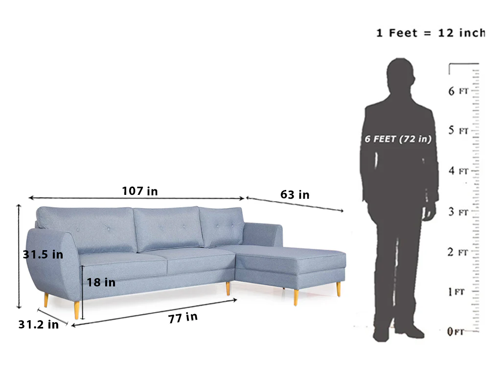 - Dimensions : 3 Seater: 77(W) X 31.2(D) X 31.5(H) inches; Lounger: 30(W) X 63(D) X 31.5(H) inches, Seating Height: 18 inches.