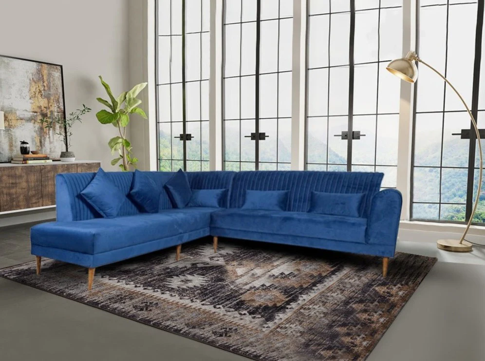 Experience ultimate comfort and style with the Evelyn Sectional Sofa in Blue Fabric. This luxurious sofa features a beautiful blue fabric that adds a pop of color to any living space. With its spacious design and plush cushions, you’ll never want to leave this cozy spot. Elevate your home decor with the Evelyn Sectional Sofa!