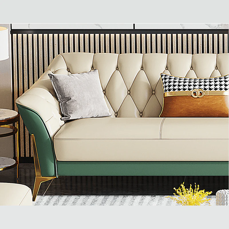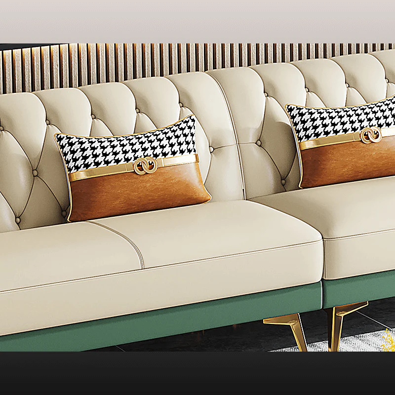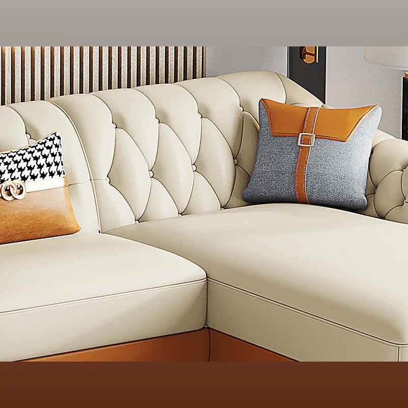 A tufted faux leather sectional sofa.